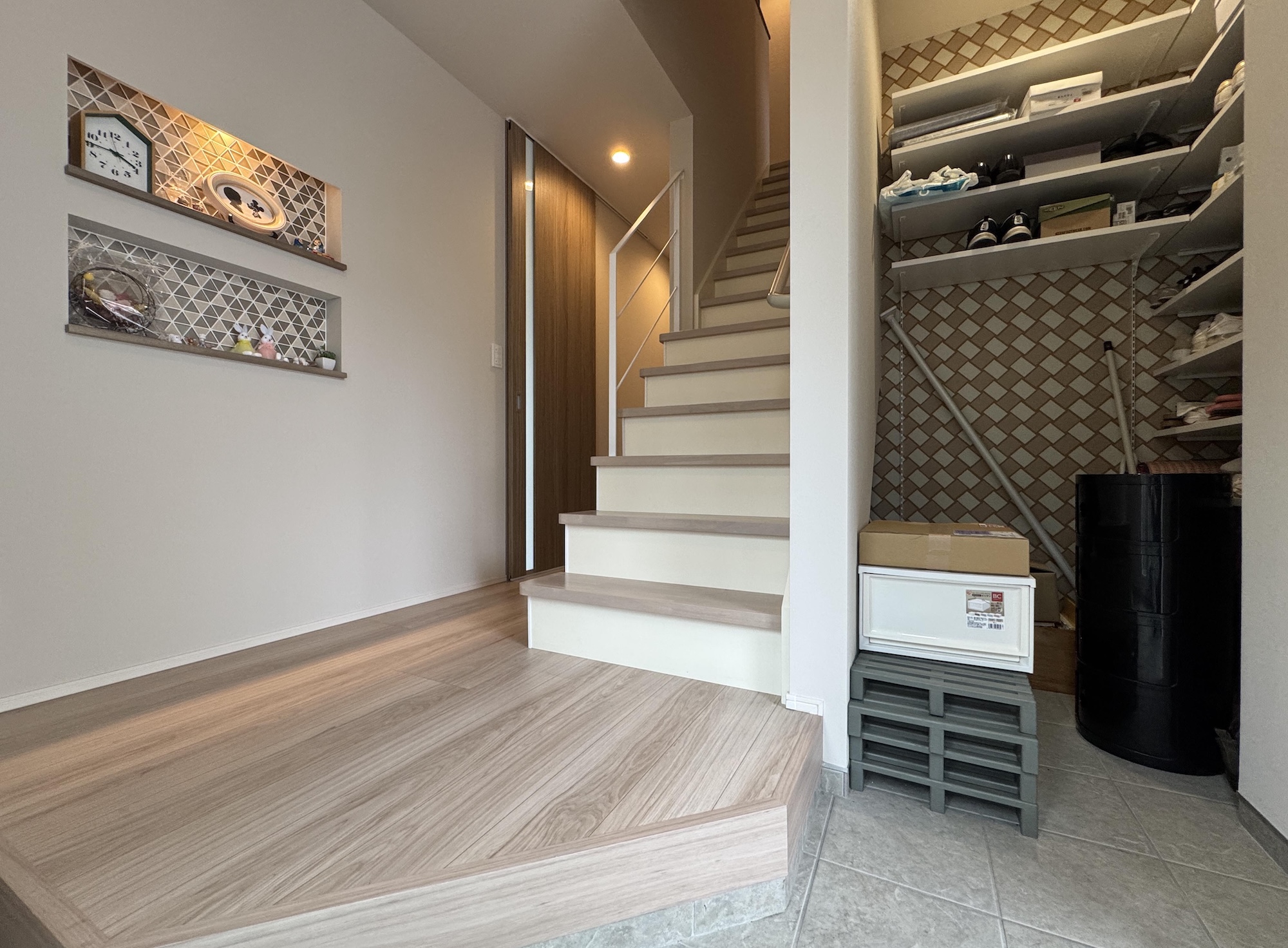 また、壁にはアクセントクロスを用いたニッチを造り、インテリアを飾れるようにされました。このようなちょっとした工夫が、家をおしゃれに引き立ててくれます。