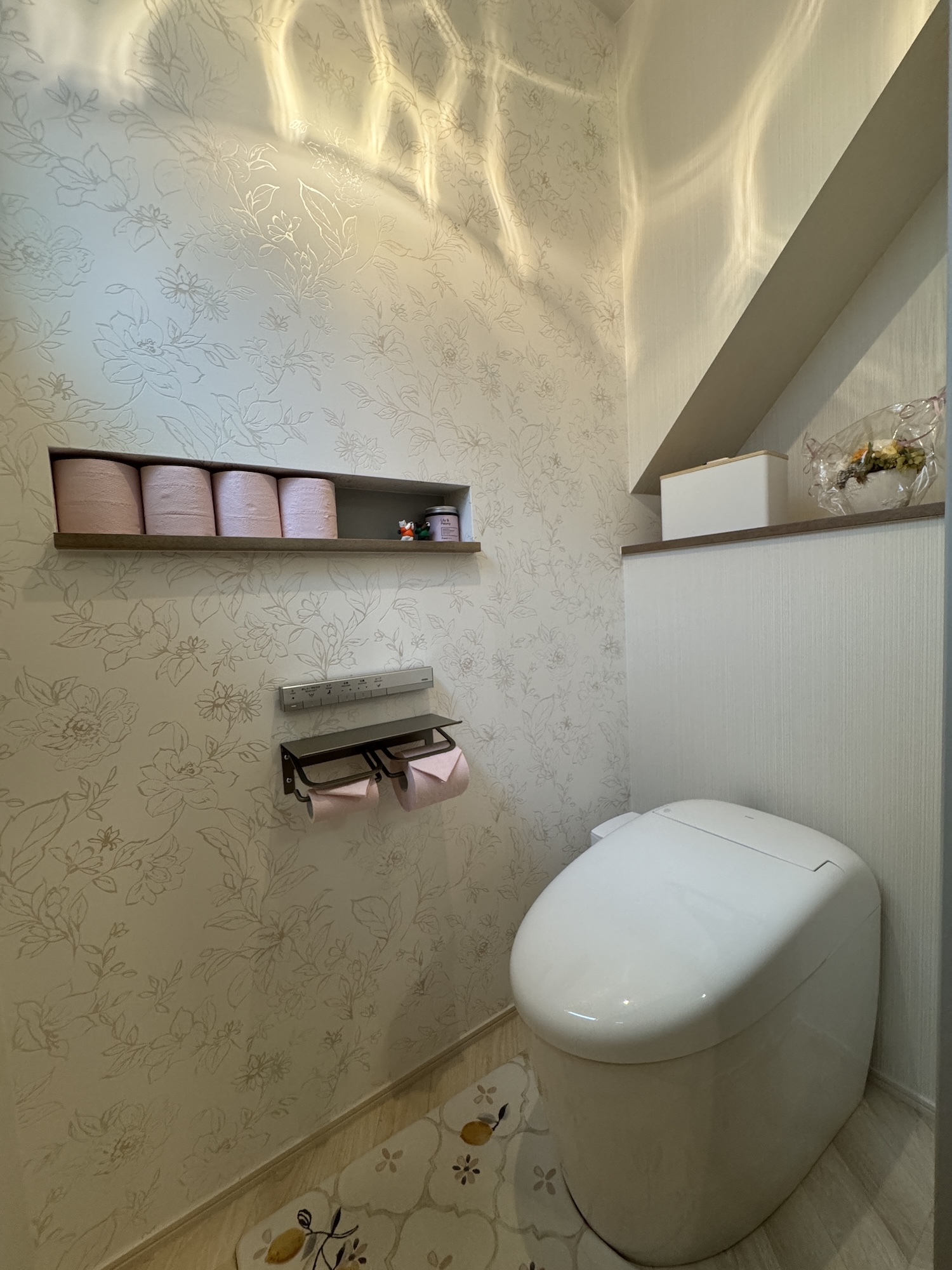 トイレットペーパーを収納できるサイズに造られたトイレのニッチ。