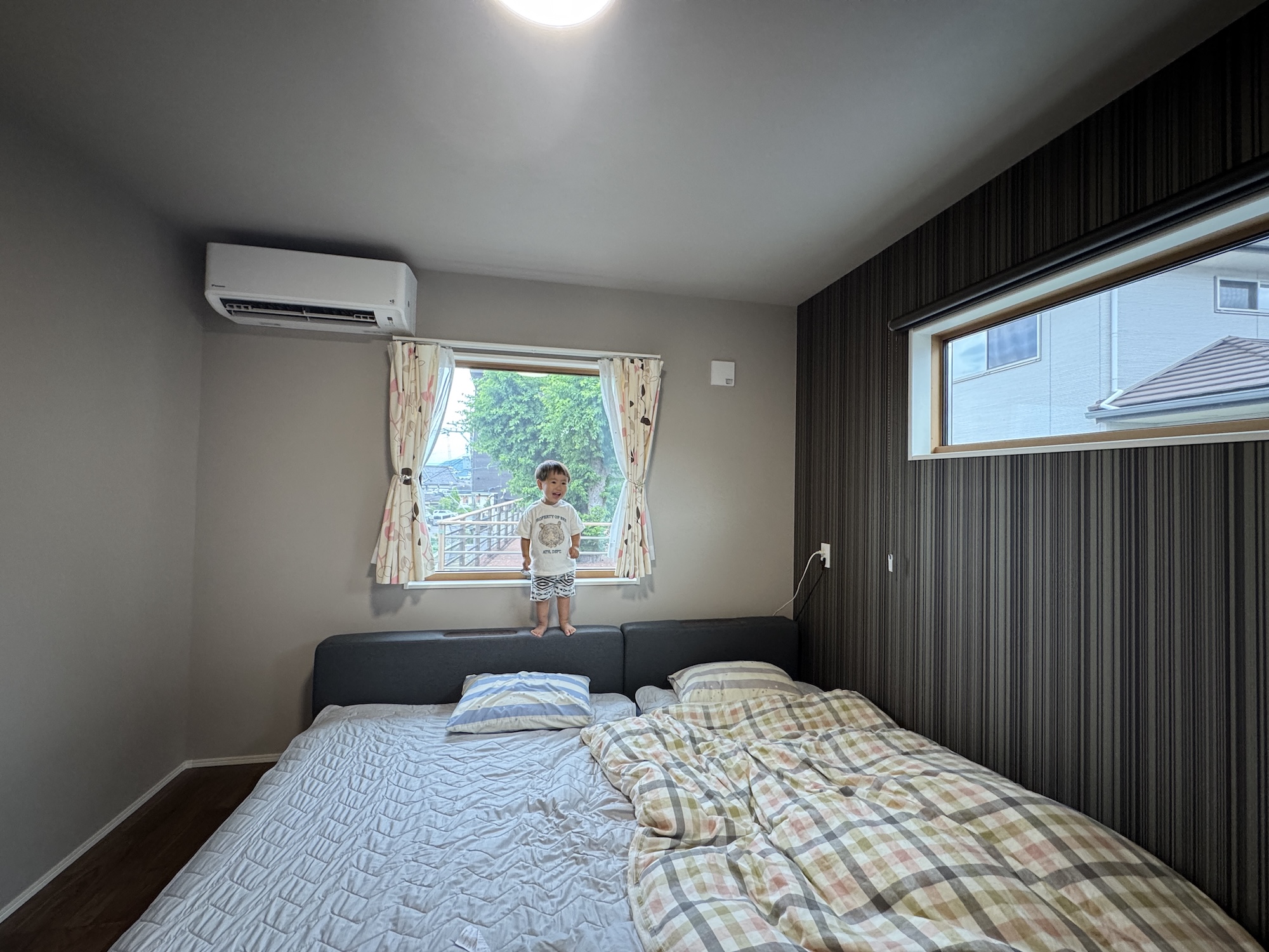 お子さまが小さい時は、このようにベッドを並べて“川の字”になってお休みになるご家庭も多いんです。