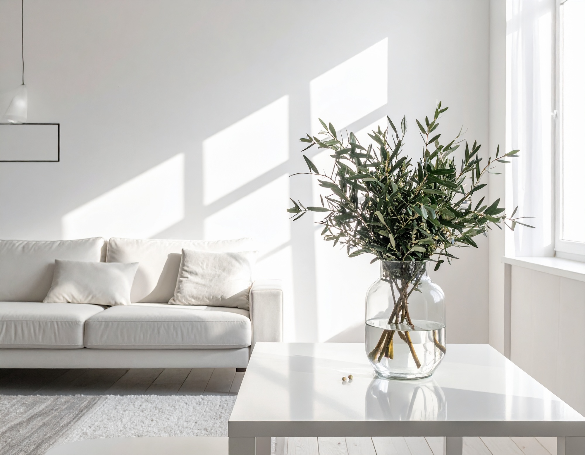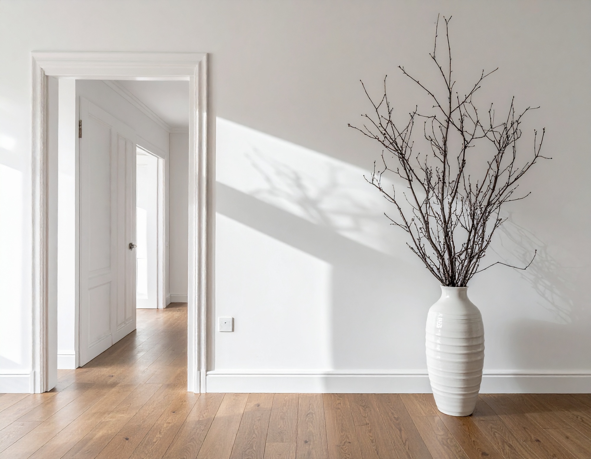 壁に枝のシルエットが映え、まるで季節のアートのように楽しめます。