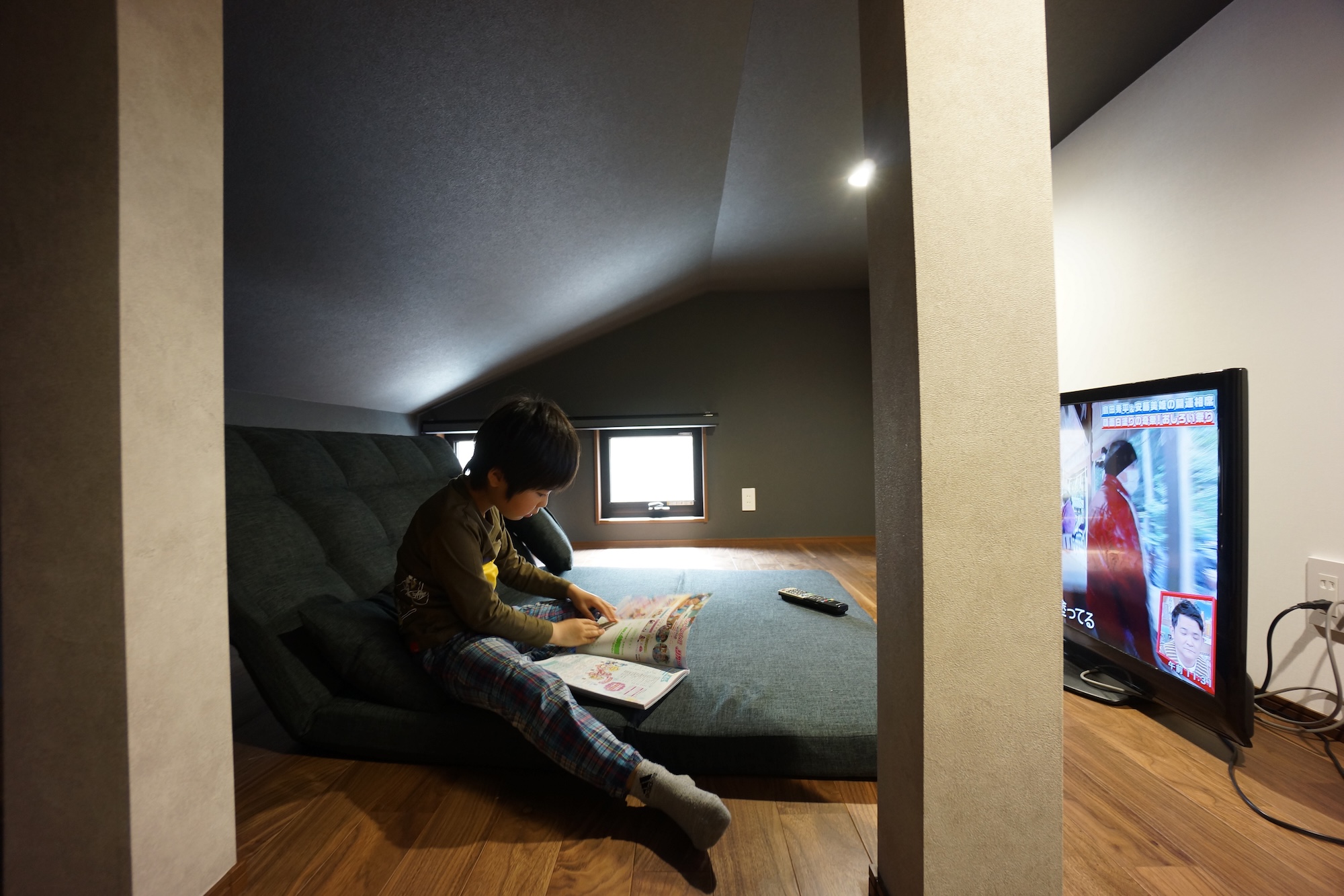 現在はお子さまの秘密基地として使われていますが、お子さまが大きくなったら、収納としても利用できる空間です。