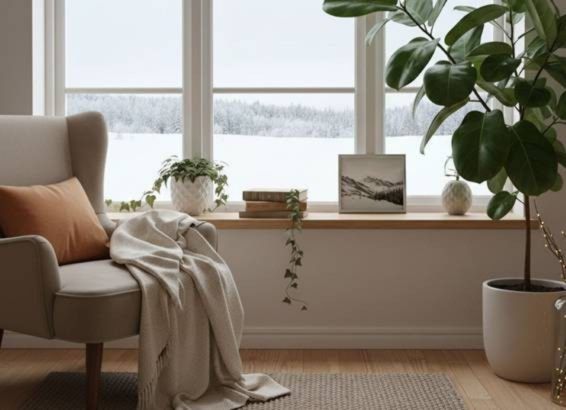 たとえば南向きの大きな窓辺。冬でも日差しがたっぷり入り、昼間は意外と暖かい場所です。ここは光を好む性格の植物に最適。フィカス・ウンベラータやゴムの木、パキラなどは、明るい場所でこそ本来の美しい葉色を発揮します。ただし、夜間は窓際が冷えやすいため、鉢を少し室内側に移動させると、寒さによるダメージを防げます。