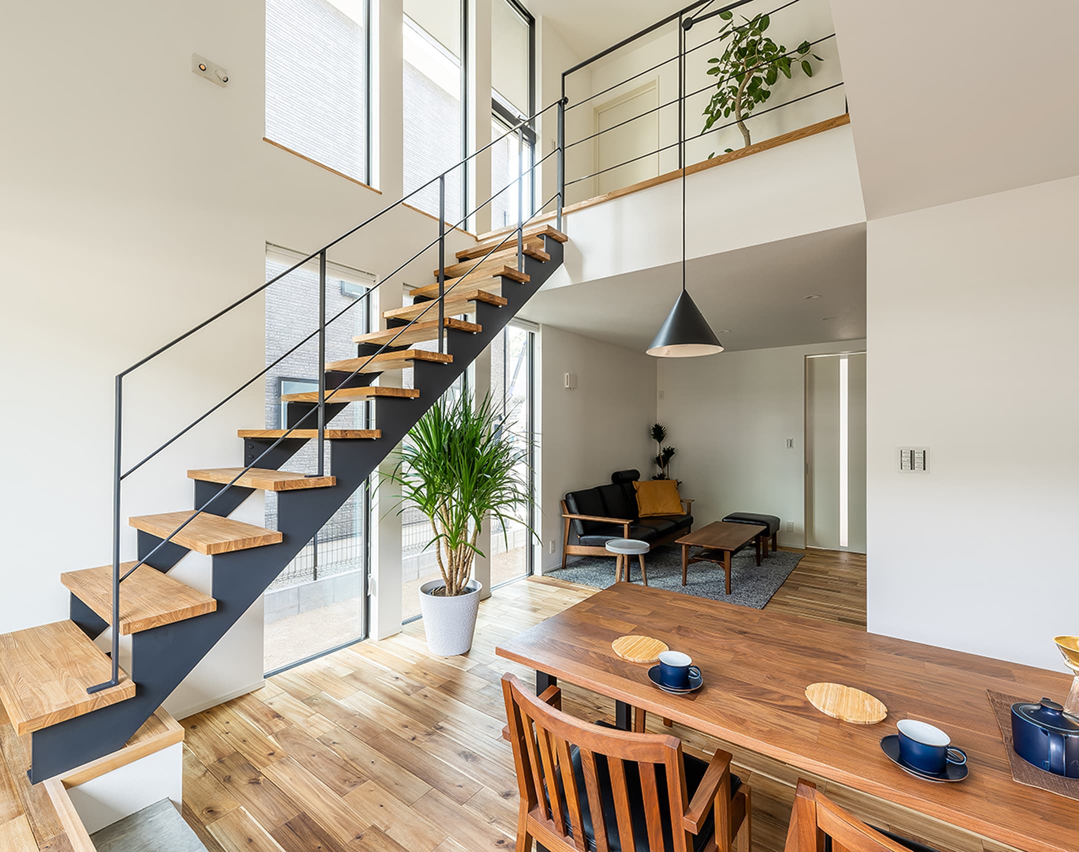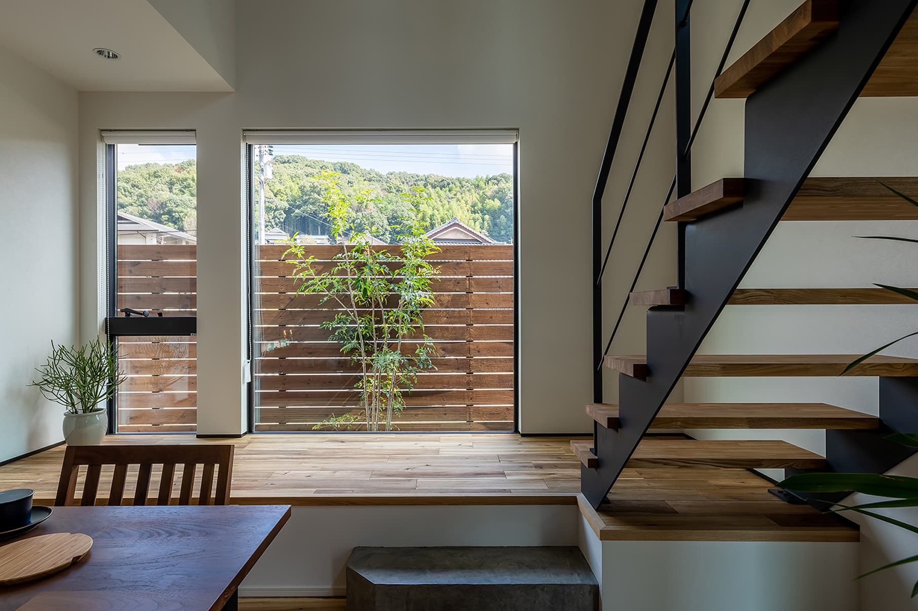 私たちの家づくりでは、大きな窓や庭と調和するだけでなく、室内のデザインにも自然を取り入れています。