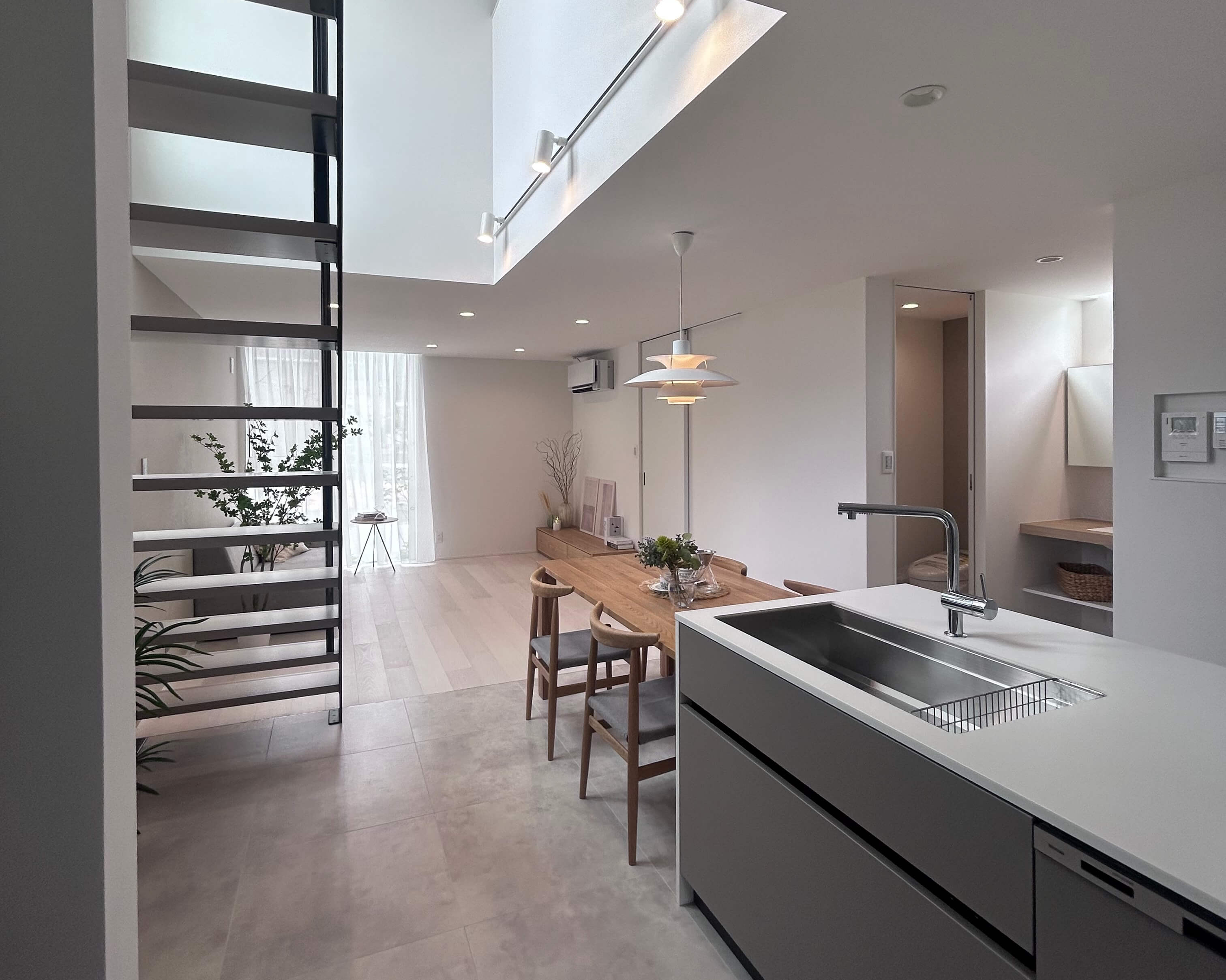 規格住宅trip(トリップ)のrurkuのプランによるモデルハウスは、余分な装飾を削ぎ落とした「引き算の美学」が宿る家。